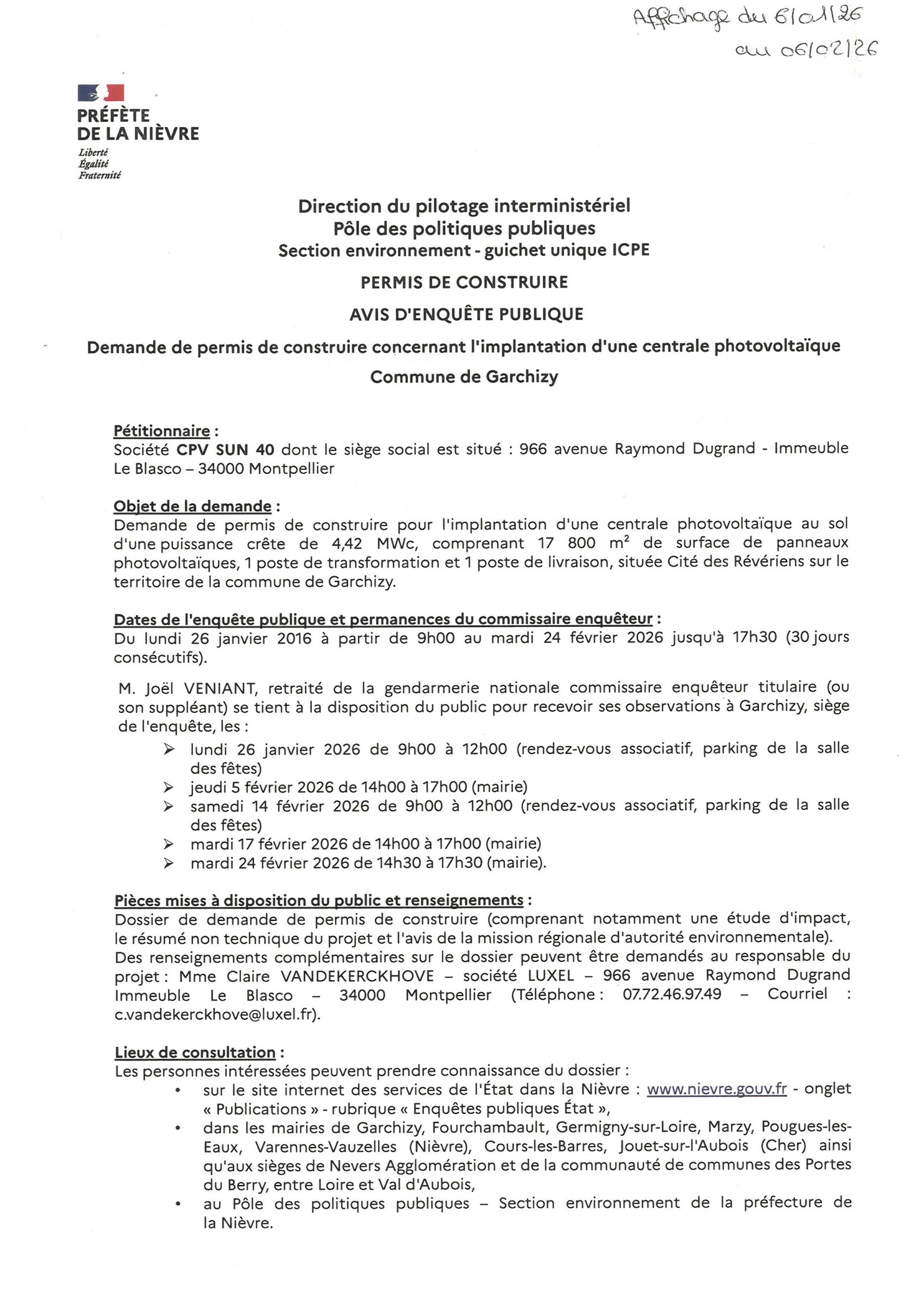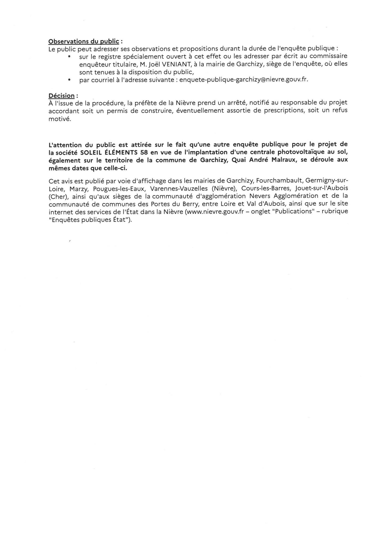 ENQUÊTE PUBLIQUE - GARCHIZY - CENTRALE PHOTOVOLTAÏQUE - CITÉ DES RÉVÉRIENS