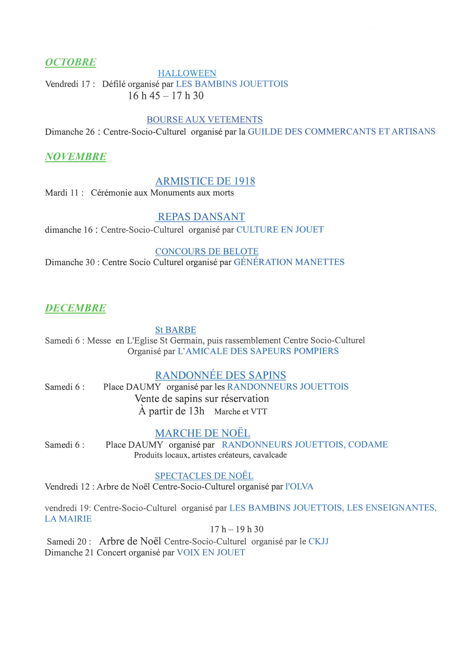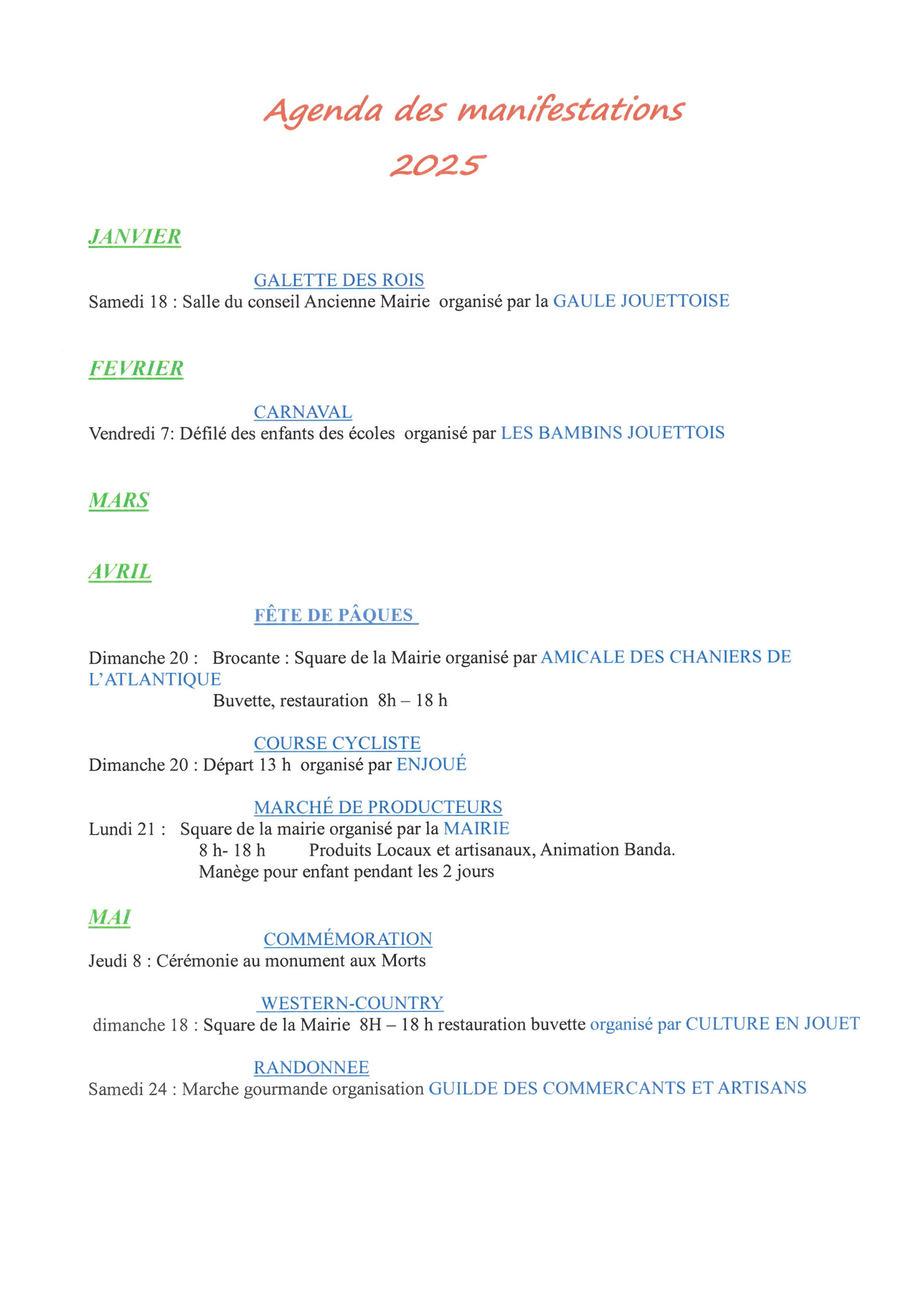 AGENDA DES MANIFESTATIONS 2025