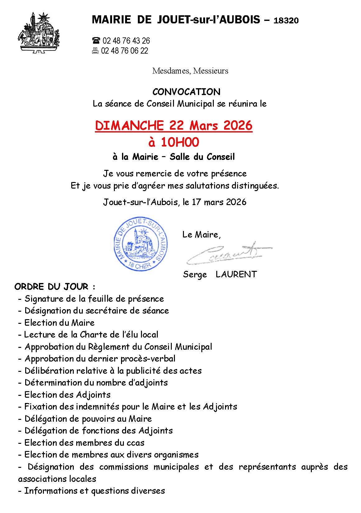 Convocation Conseil Municipal